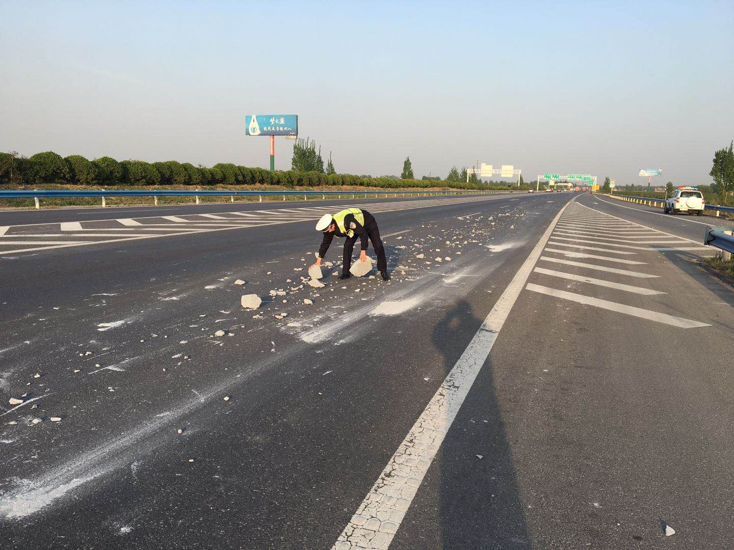 石块散落高速 民警及时清理保畅通
