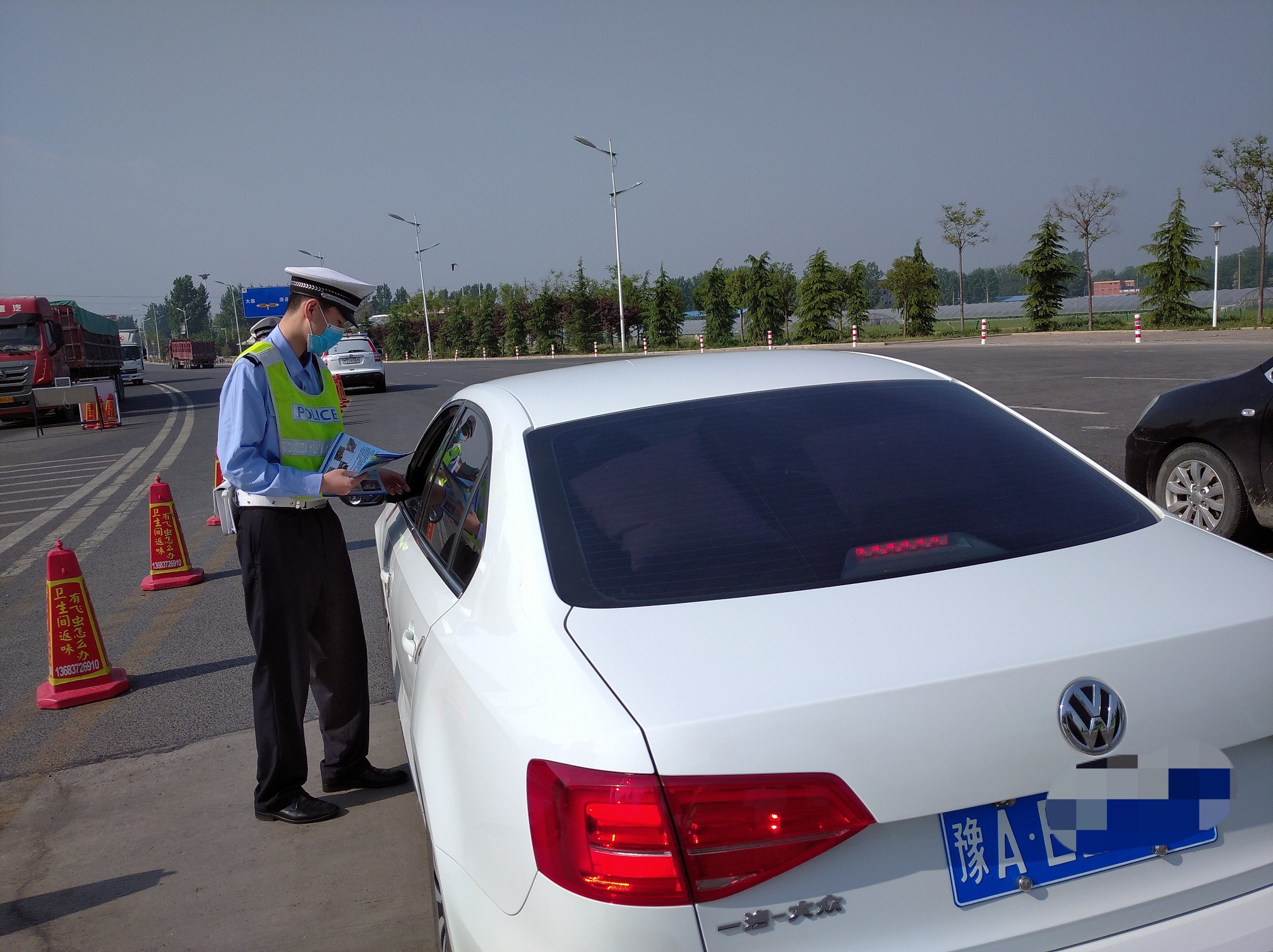五一小长假,高速免费通行的最后几天时间,大广高速滑县段车流量再创新高,期间安阳市高速交警一大队民警、辅警采取动态路面巡逻,静态站口执勤的方式确保管辖路段的安全畅通,群众的平安出行,同时联合路政在滑县站开展交通安全宣传活动。