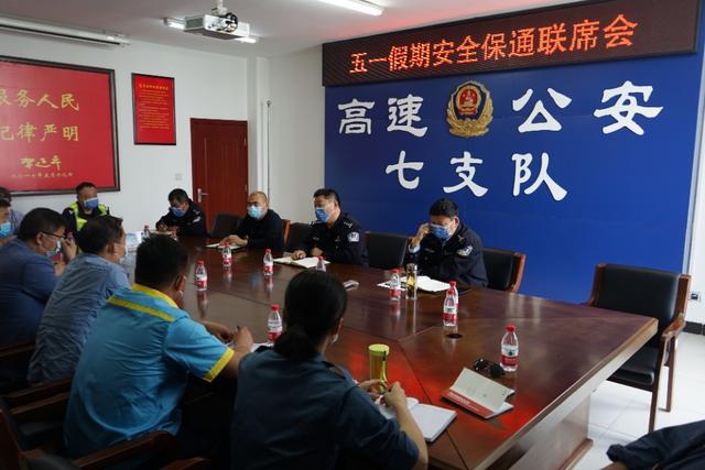2020年4月30日,河南省公安厅高速交警总队七支队召集辖区高速公路运营公司-河南高速公路发展有限责任公司洛阳分公司及相关职能部门、河南高速公路发展有限责任公司豫中养护公司孟津工区、河南高速公路发展有限责任公司服务区公司洛阳服务区、中国石油高速公路公司洛阳服务区加油站等相关单位就五一道路安全保通工作举行联席会议,分析面临形势,各单位查找并解决工作中的实际困难,就五一假期道路安全管理工作进行安排部署。
