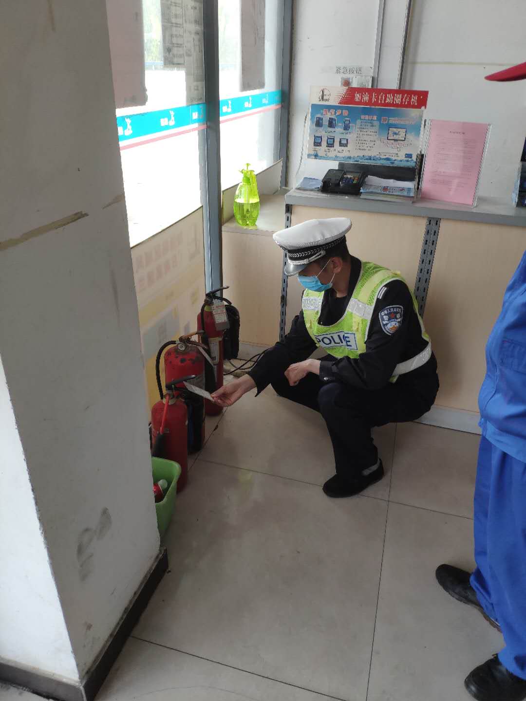随后,民警走进加油站,向加油站负责人传达了关于危化品运输车辆禁行相关规定,要求其做好服务区燃油补给车辆的报备登记工作,在确保满足大交通流量下车辆燃油供需。民警还进一步检查了加油站的消防设施,确保将存在的安全隐患消灭在萌芽中。