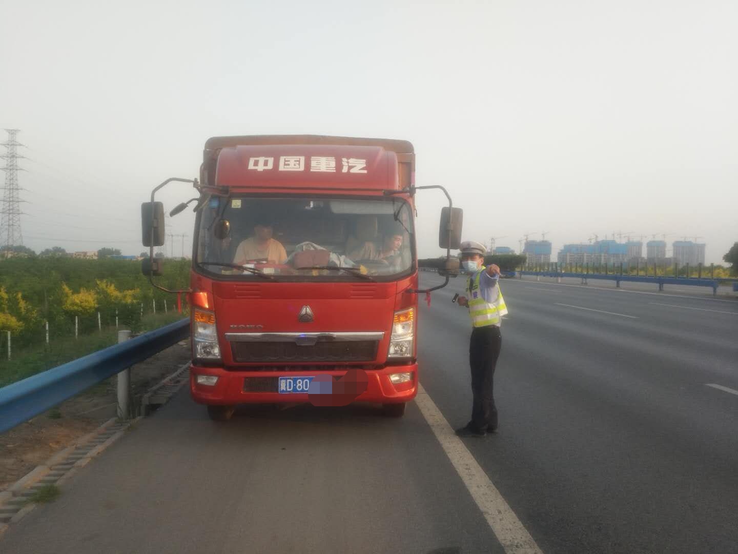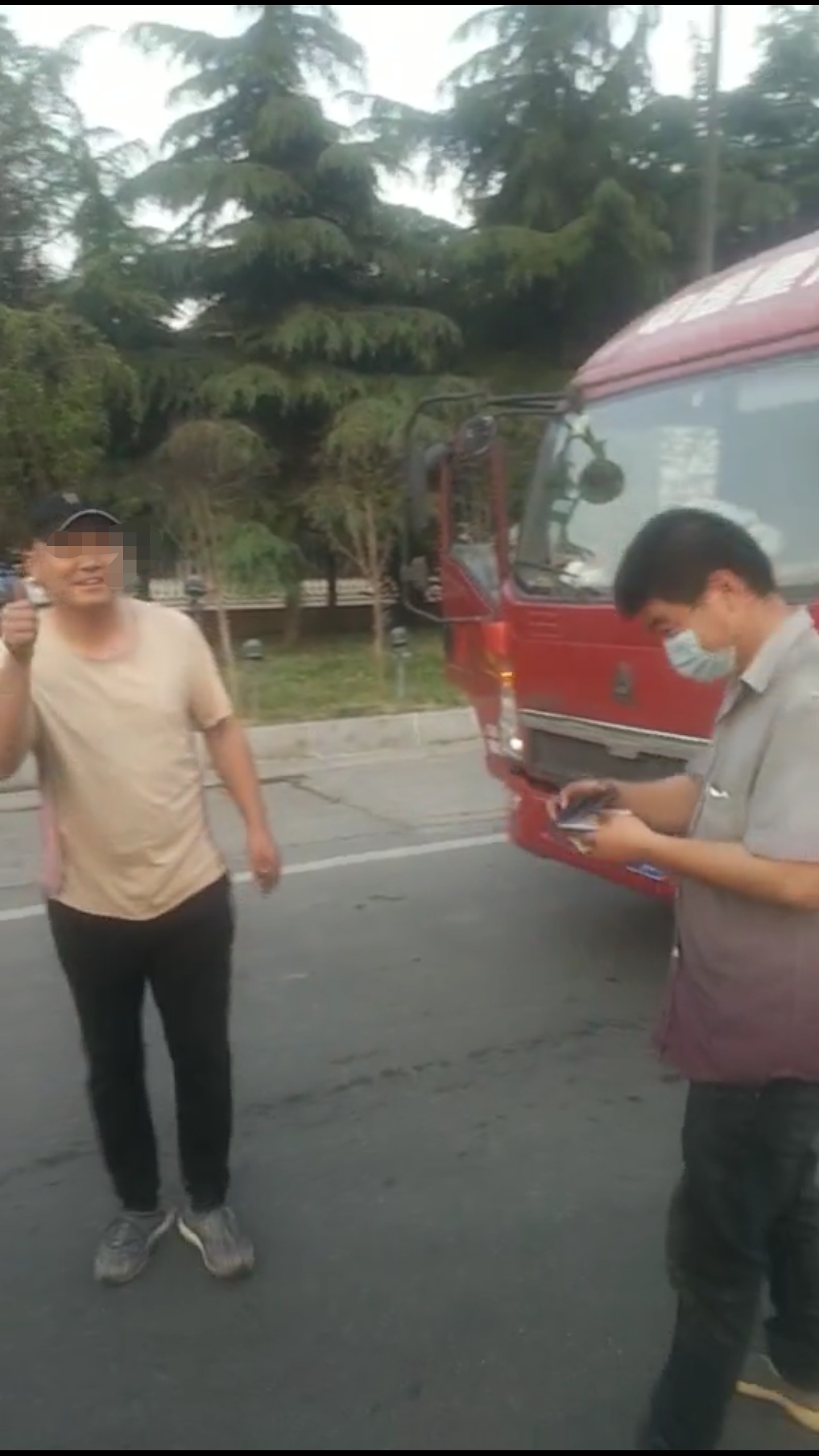 据唐师傅讲,当时5月1日18时左右,他行驶到京港澳高速公路503公里路段,发现刹车出现故障、轮胎抱死,只能冒险低速沿着应急车道前行。刚起步十多米,被巡逻的河南省高速交警总队四支队民警陈红彬、辅警赵晓京拦下。