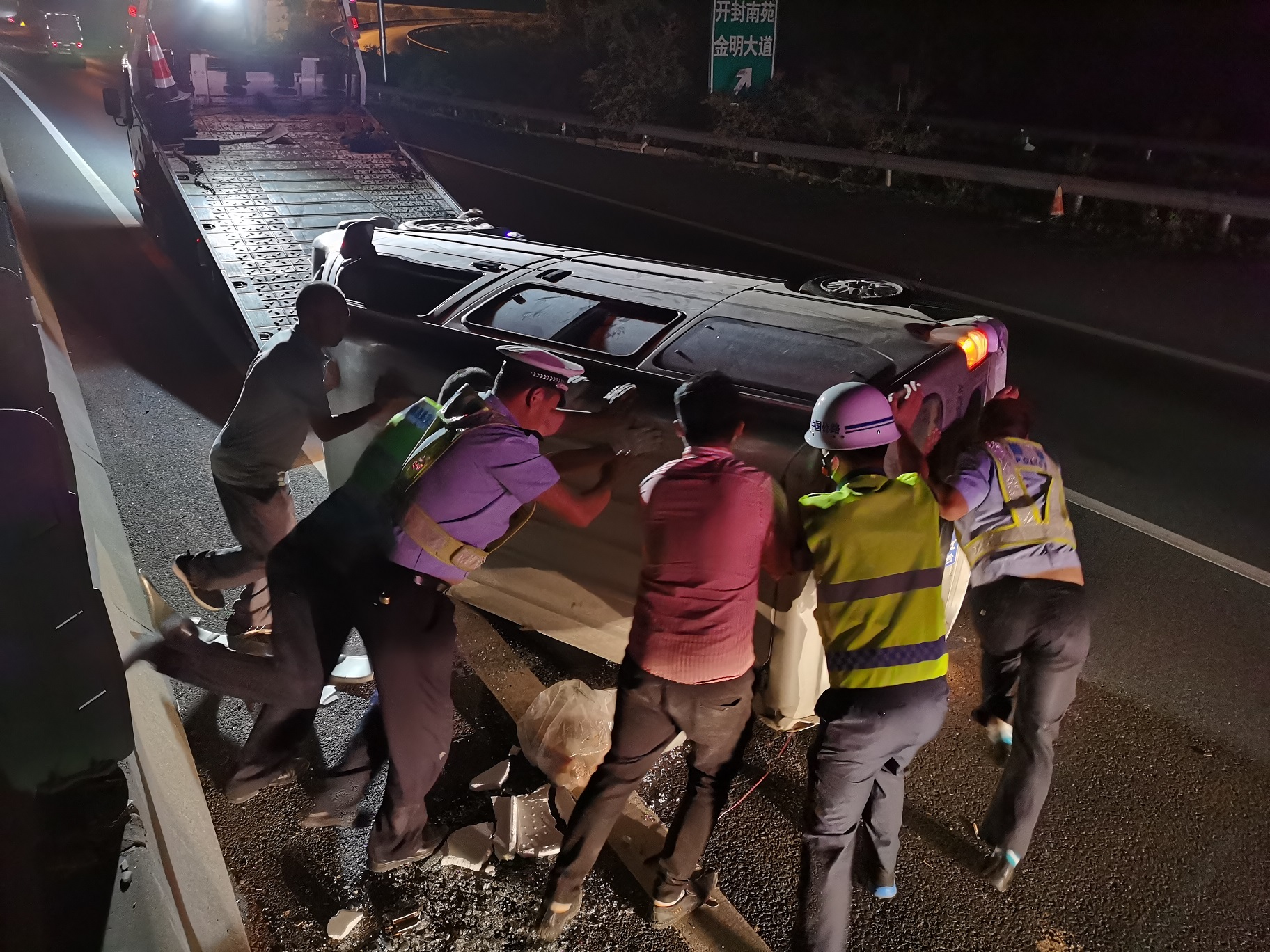 5月28日晚上10点30分许,在郑民高速45KM北半幅,发生了一起单方事故,开封高速交警支队一大队民警接到报警后立即赶赴了事故现场。