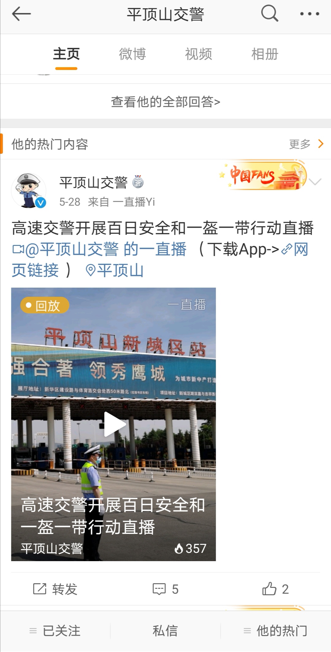 其次,在路面LED电子显示屏循环播放“珍爱生命,请系好安全带”等专题宣传标语;并利用大队双微平台等新媒体账号推送“一盔一带”专题宣传文章,普及正确规范使用安全带的知识。同时,大队民警通过微博平台与一直播平台,进行高速公路交通安全整治“百日行动”和“一盔一带”安全守护行动执法直播,通过现场直播的方式提高驾乘人员的安全意识、法律意识,从而自觉抵制交通违法行为,文明、安全出行。