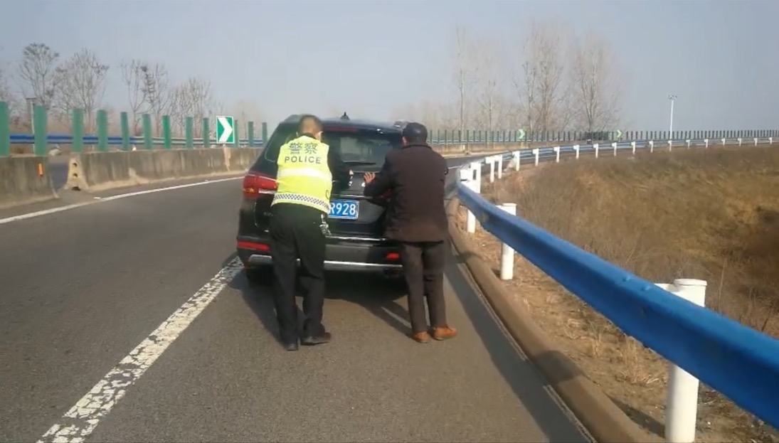 2021年3月3日上午,周口高速三大队淮阳中队巡逻至辖区商南高速125公里处匝道时,发现应急车道内停着一辆越野车,车外老两口焦急地对过往车辆招手求助。
