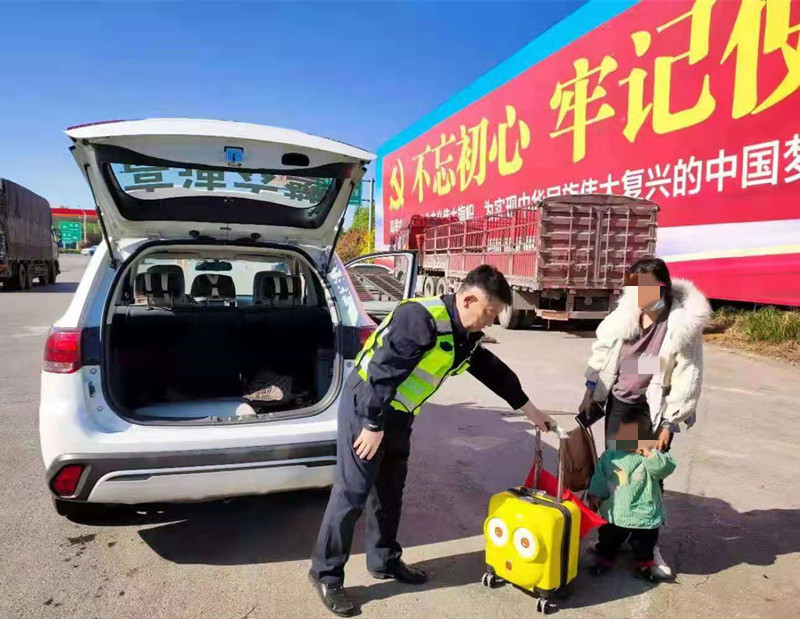 巡逻民警立即将警车停靠到应急车道后方做好安全警示。上前询问情况,原来这对母子是要回清丰老家看望生病的老人,为了省钱便从安徽客运站外乘坐一辆线路牌为安徽来往濮阳的大巴车。一路倒也安全无事,当行驶到大广高速清丰收费站出口约1公里处,客车随车人员要求母子俩收拾东西下车步行出收费站,两人无力对抗,眼睁睁被赶下车放在高速公路应急车道上。孩子母亲心里害怕,抱着年幼的孩子也不敢在高速公路拦车求助,无奈只得拖拉着繁多物品步行。所幸被巡逻民警及时发现,并安全护送至大广高速清丰收费站下站口和焦急等待的家人团聚。