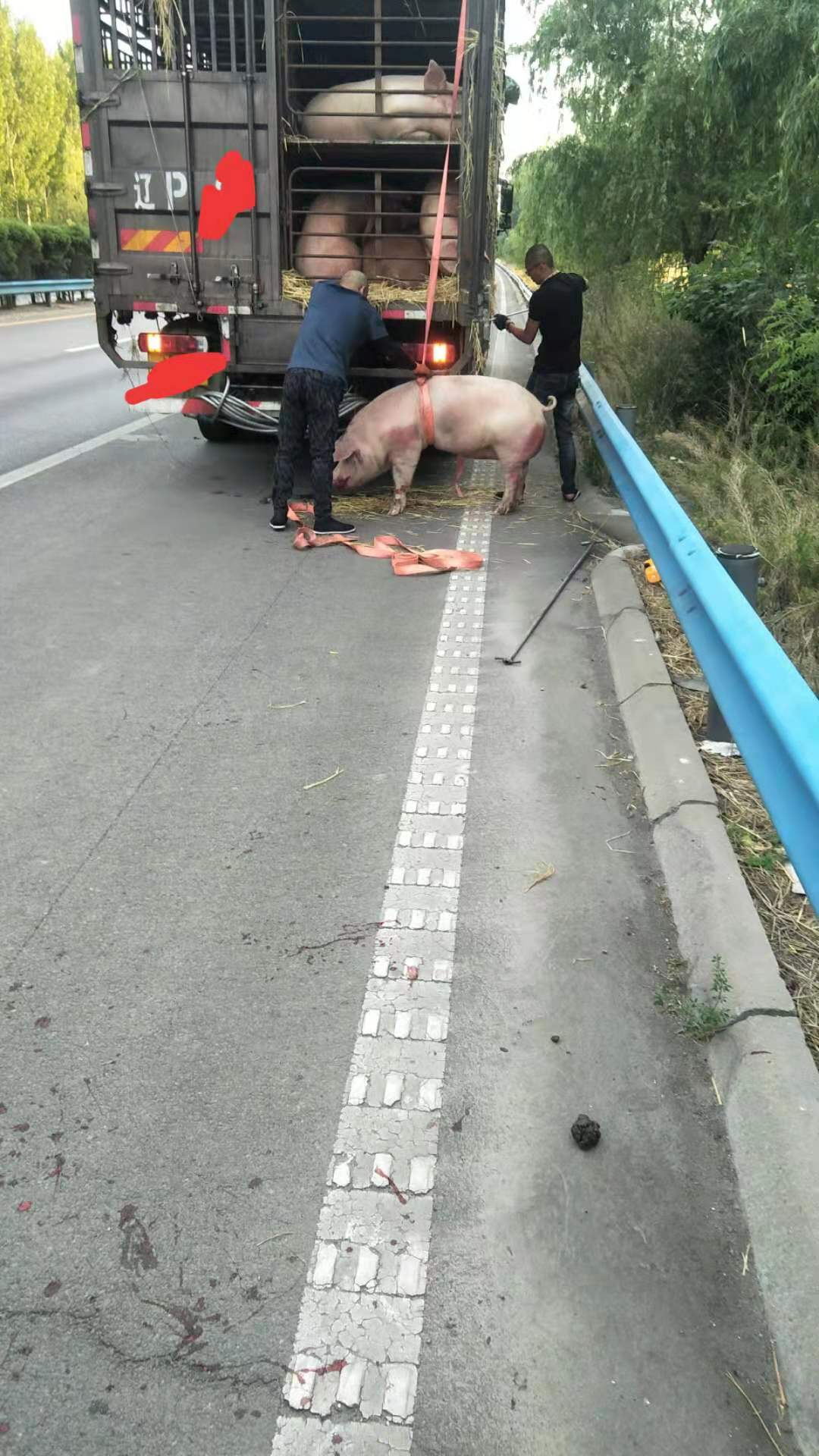 在高速公路上,由于一些货运司机疏忽大意,经常会出现货物掉落的情况,尤其是猪、牛、羊等活物,跳出车厢的情况也不少见。