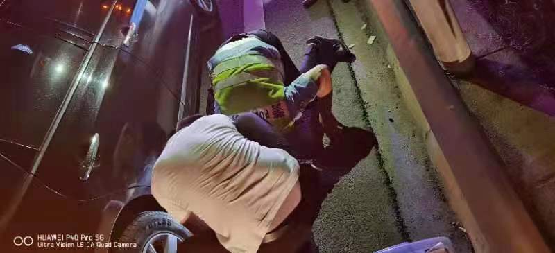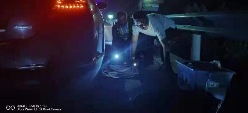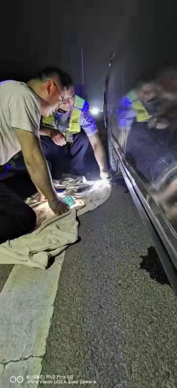 6月16日22时30分许,开封高速交警支队民警驾驶警车沿日兰高速执行巡逻任务,当行驶至日兰高速464公里处时发现一辆小轿车停放在应急车道内,见此情形,民警立即停车上前询问情况,经了解,该驾驶员在正常行驶的过程中车辆突发爆胎,无法正常行驶,所幸并无人员伤亡。了解情况后,民警迅速拿出警示三角架放在车后150米外,做好安全防护警示,同时从车内拿出工具,帮助该驾驶员更换轮胎。十几分钟后,民警就快速地换好了轮胎,车辆又可以安全上路行驶了,路面安全隐患得以及时消除。