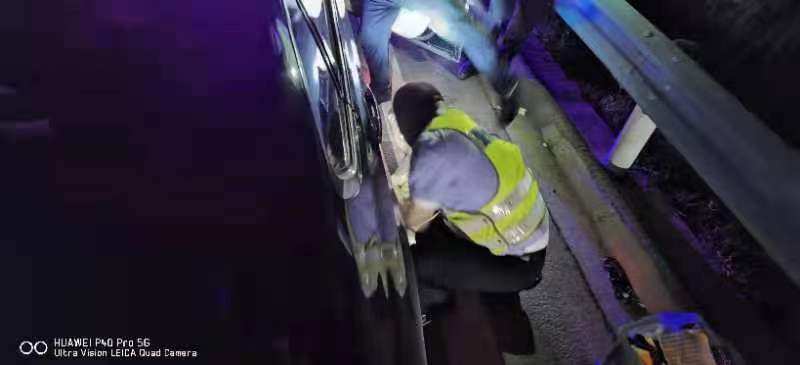 最后民警嘱咐该男子驾车行驶前要进行安全检查,遇到这种情况应立即报警,并在安全距离设置警示标志,人员撤离至护栏外等待救援,防止发生二次事故。