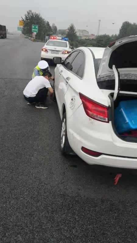 经查,这辆洛阳牌照一汽牌小客车左前轮爆胎,车子暂时无法继续行驶,民警立即一边警戒一边指导司机后方放置警示标志,协同司机一起迅速换了轮胎。司机姓谷,宜阳人,借朋友的车,这次是利用节日外出办事返家。化险为夷后,谷某对民警的帮助非常感激,安全快速离开现场,进入服务区进一步处理。