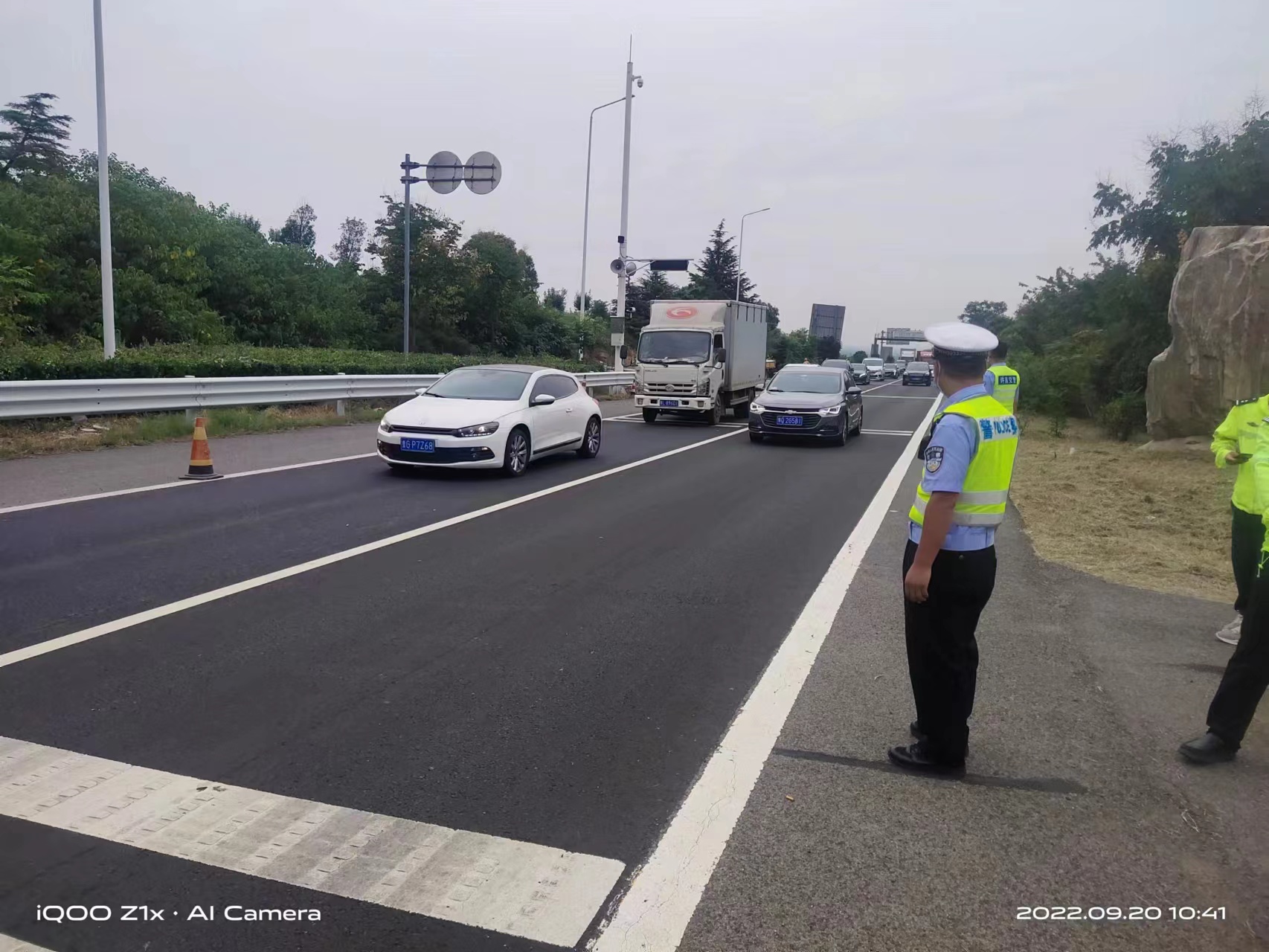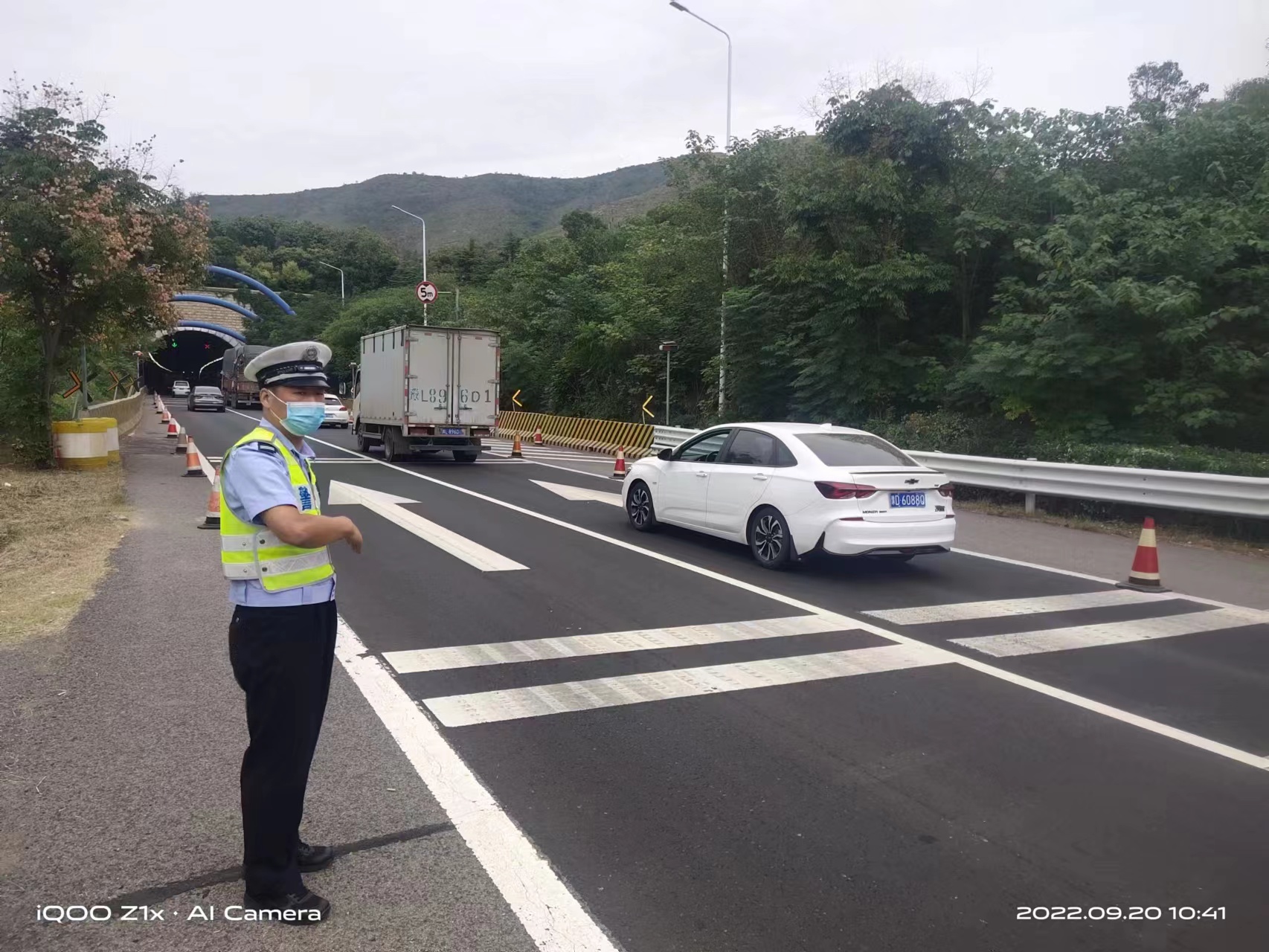 2022年9月20日上午,许昌市公安局交通管理支队第三高速公路执勤大队民警进行日常巡逻,巡逻到郑栾高速始祖山隧道口时,发现车流量增大,民警快速处置,鸣笛示警,加强疏导,加快车辆的通行速度,为车辆能够尽早驶离隧道提供有力保障。经过努力,车辆速度提高,隧道口车辆通行井然有序。
