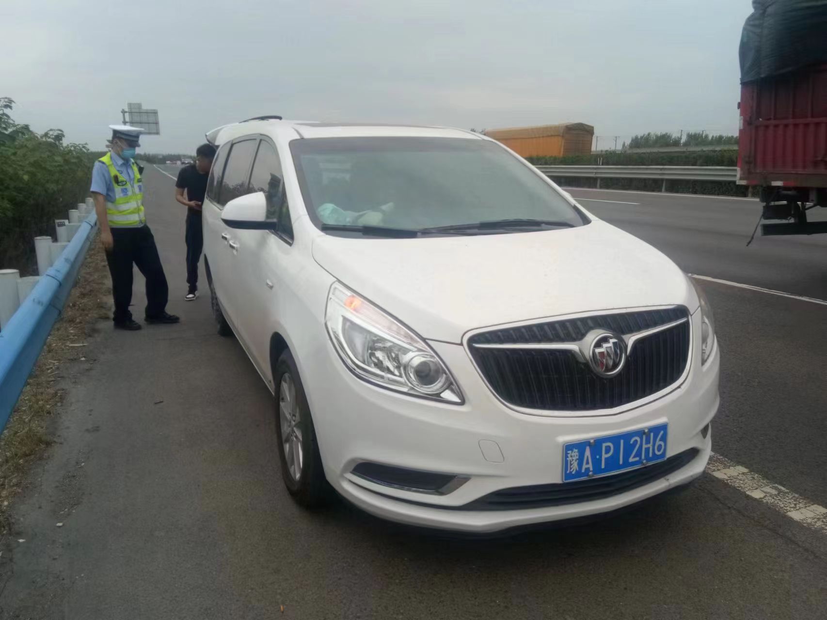 2022年9月20日上午11时许,许昌市公安局交通管理支队第一高速公路执勤大队民警在辖区京港澳高速巡逻时,发现一辆白色GL8停在应急车道上,仅开启警示双闪灯,并未在车后设置警示三角牌,民警随即下车查看。
