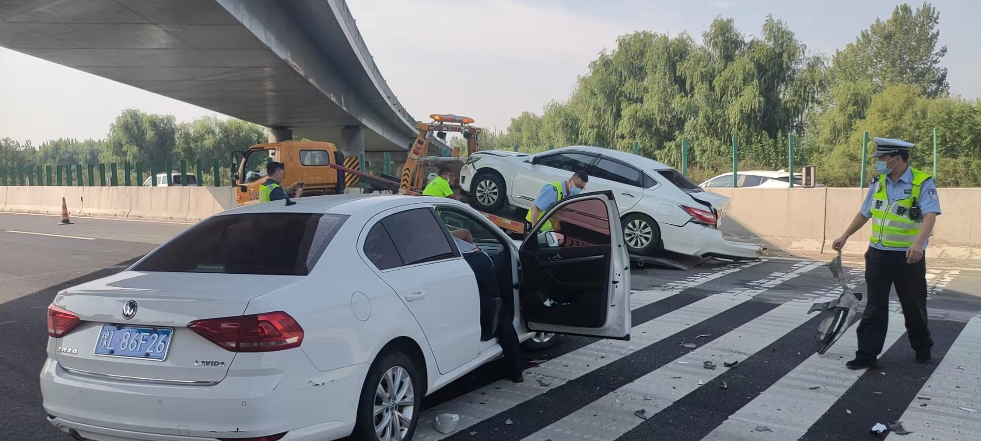 宣传交通安全交警苦口婆心,创造文明交通大家谨记在心;行车走路礼让三先万众一心,漫长人生平安是福众皆开心。2022年9月22日9时40分许,许昌市公安局交通管理支队第一高速公路执勤大队接到报警称:京港澳高速757公里发生一起三车追尾事故,民警立即赶赴现场。
