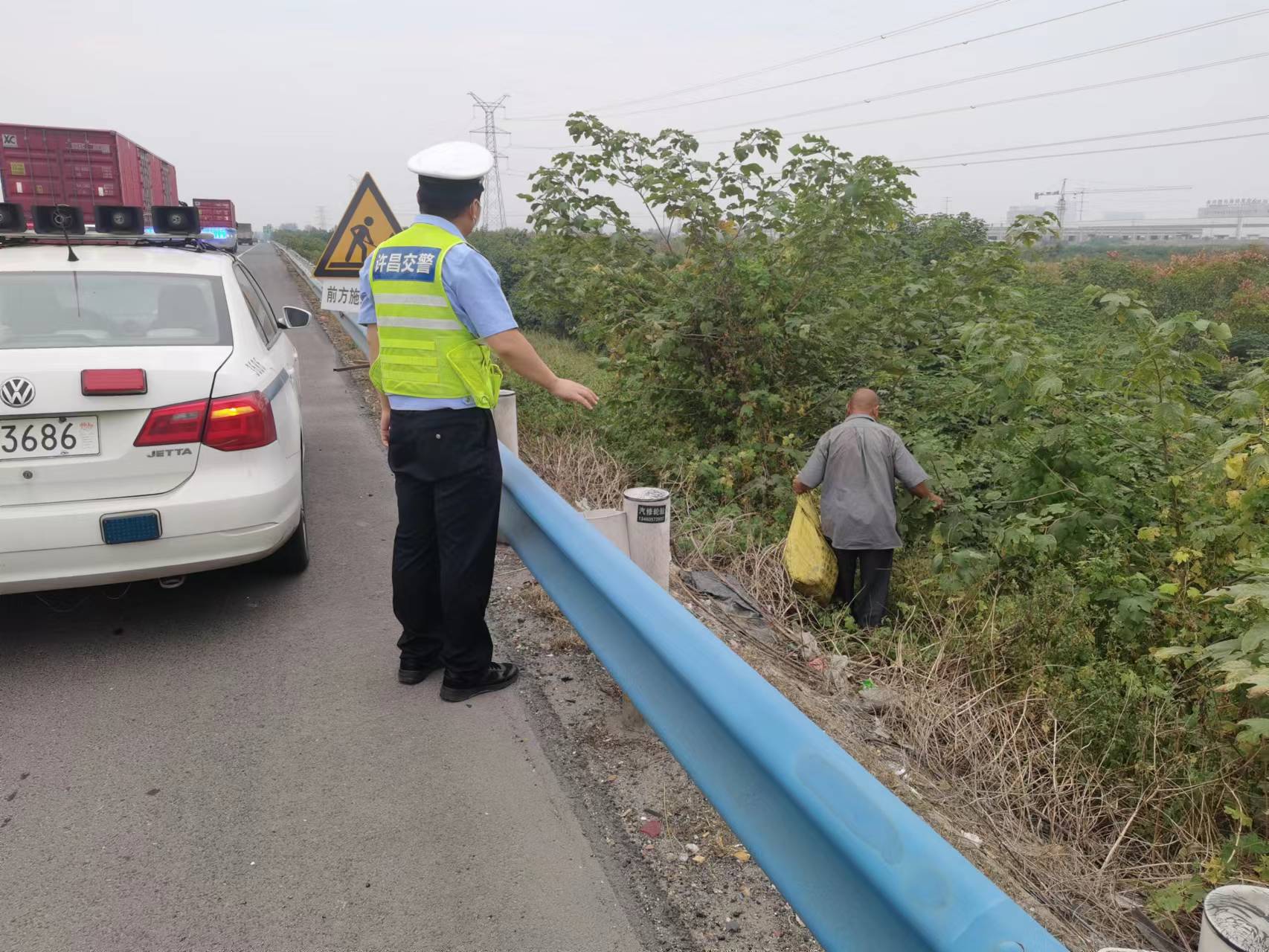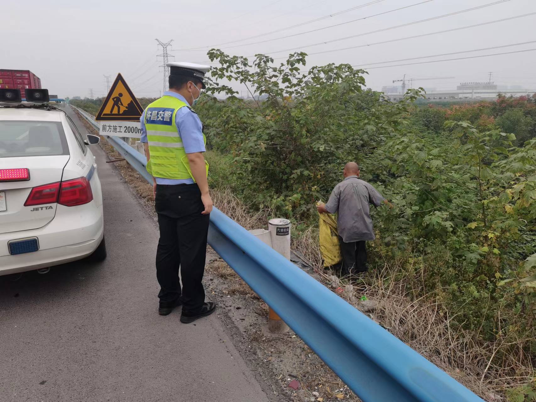 经民警询问得知,该男子是一名拾荒老人,从附近村庄步行上了高速。民警向该男子说明行人上高速的危险性,在进行了批评教育后将其带离高速以避免发生交通事故。
