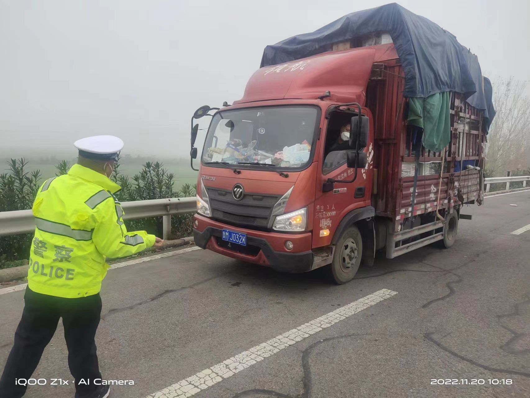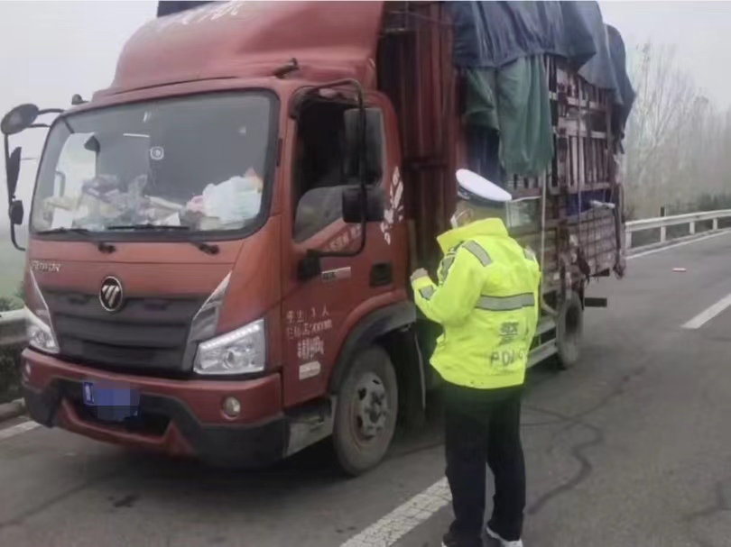 2022年11月20日上午10点18分,许昌市公安局交通管理支队第三高速公路执勤大队民警在巡逻到郑栾高速58公里处发现一辆轻型货车停在应急车道上,车辆没有开启双闪灯,车后没有摆放任何警示标志,民警立即停车上前查看情况。