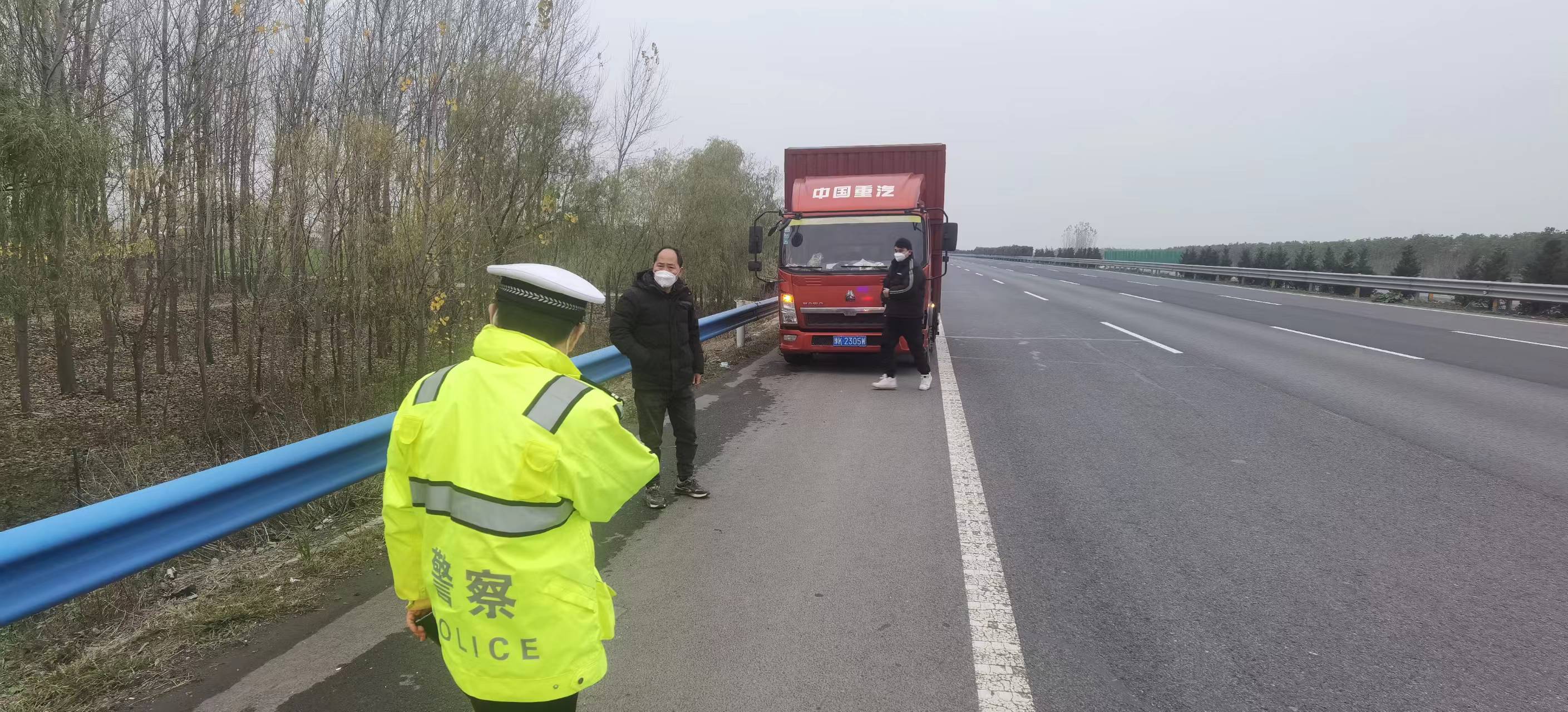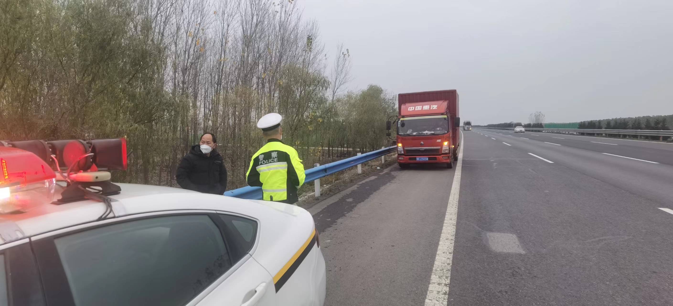 2022年11月28下午16时许,许昌市公安局交通管理支队第一高速公路执勤大队民警巡逻至京港澳高速730公里处时,发现一辆红色货车停放于应急车道内,仅见危险报警闪光灯闪烁,车辆后方未摆放警示标志,司机正在换备胎,现场车流量较大,路过车辆纷纷避让,存在极大的安全隐患。
