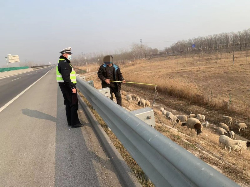 为确保春运期间辖区道路安全畅通,濮阳高速交警支队立足辖区实际,加大路面巡逻管控力度,用实际行动维护道路交通安全。近日,濮阳高速交警巡逻民警及时劝离一起在高速公路边坡放牧行为,及时消除一起安全隐患,确保了辖区高速安全畅通。