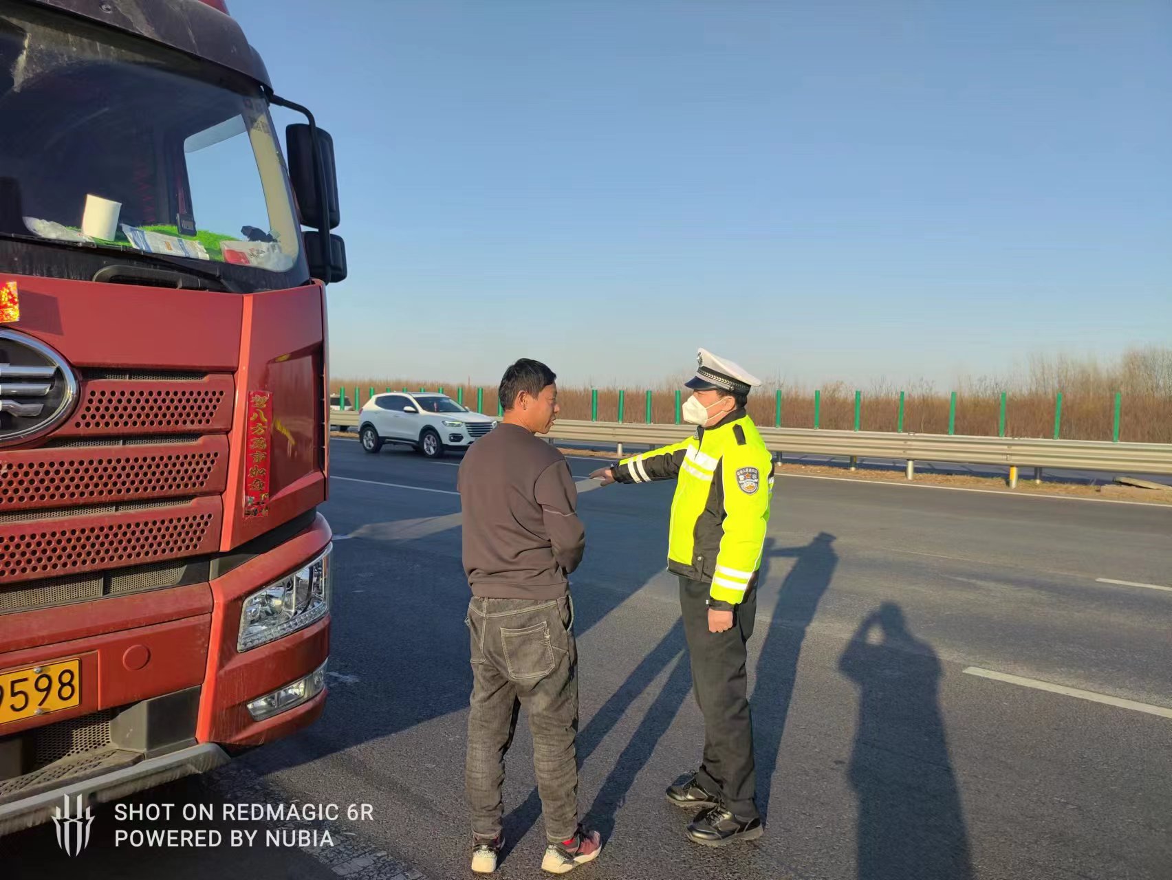 驾驶员听了民警的教育后说“在高速公路上随意停车是一种非常危险的行为,害人害己,我今后一定不再犯这样的错误了。”