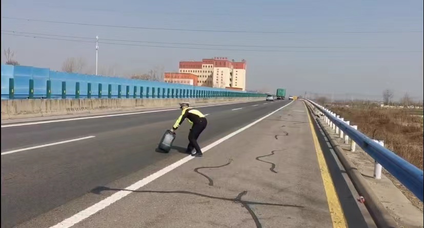 2023年3月6日10时35分左右,开封高速交警支队二大队教导员郝洪涛带领辅警李峰、娄世鹏巡逻至大广高速东半幅1969公里处时发现行车车道有破旧塑料桶一个,物品较大情况危险,过往车辆纷纷紧急避让,存在较大的安全隐患。为了避免事故发生,民警郝洪涛立即将车停在应急车道,车后放上警示锥桶,打开双闪,拉响警报,利用车辆行车间隙迅速将散落物品清理,保障了高速公路交通安全通行。清理路边掉落路障举动虽小,但能有效预防避免事故的发生,开封高速交警支队时刻保持高效快速的出警速度,保障高速公路安全,保障高速公路交通安全通行。