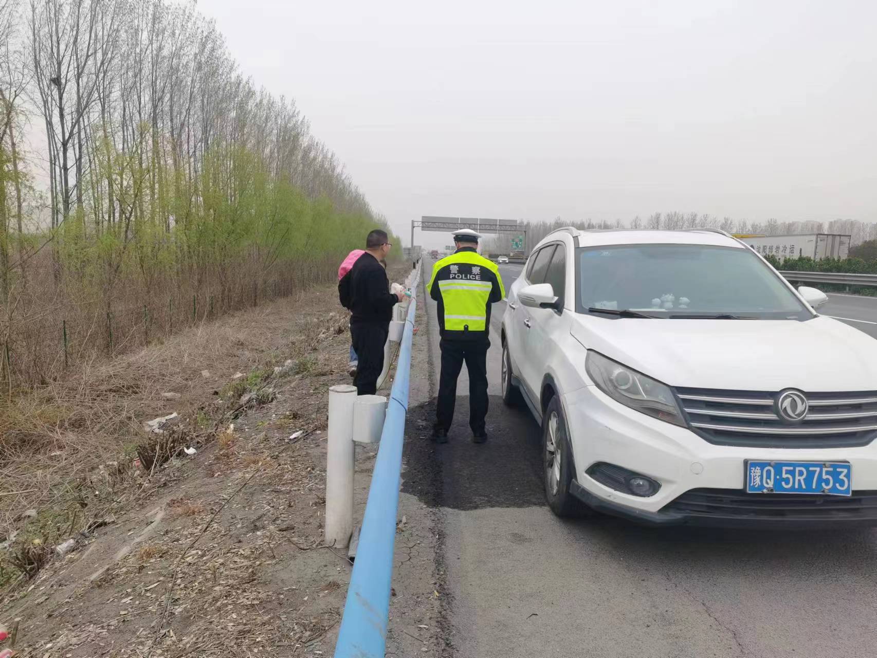 为排除险情,巡逻交警为故障车辆按照规范摆放好反光锥筒,设置安全警示标志,将车辆随行人员疏导到应急车道护栏外,并迅速联系救援车辆,指挥过往车辆避让。