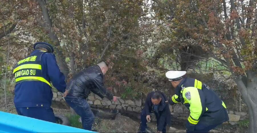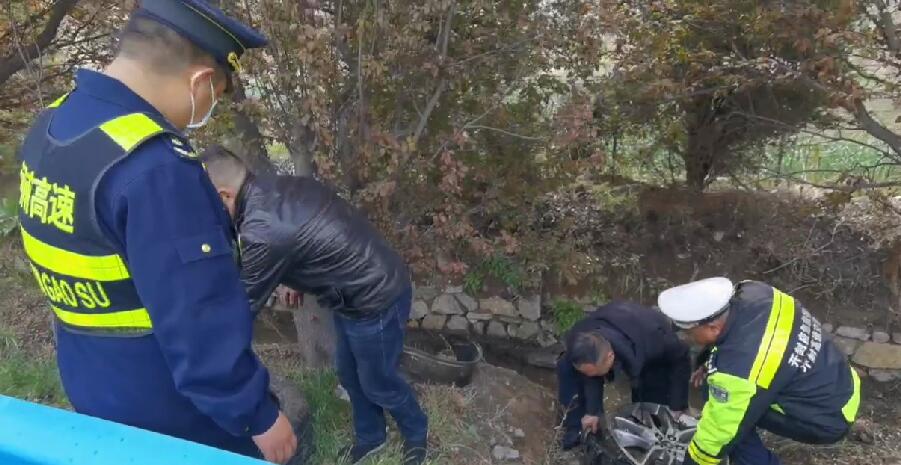 2023年4月5日09时51分,开封高速支队豫鲁省界执法服务站民警巡逻至日兰高速451公里时,发现一起撞中央护栏的单方事故,司机还未按照规定摆放安全提示牌。见此情况,我们及时安排警力对该事故车辆设置警戒安全区域,将人员送至安全护栏外,保证人员和车辆受二次事故发生,并及时通知施救单位,对该车进行救援。由于爆胎事发突然,右前轮导致前置转向轴断裂,轮胎蹦至边沟水中,司机当时已经因爆胎导致心情复杂,不知所措。我们民警帮助司机挽回财产损失,跳到边沟里面捞司机的个人物品。