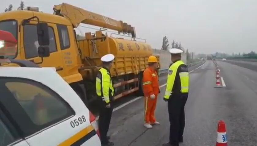 2023年4月25日10时30分,开封高速交警支队豫鲁省界执法服务站民警,巡逻至连霍高速485公里处北半幅,对施工养护工作进行现场检查。然后,对施工单位进行作业项目和安全措施等问题进行全面检查,民警主要检查施工现场是否按照规范摆放反光锥筒,施工标志和限速标志等警示标志,督导施工人员整改不规范的地方,及时消除存在的安全隐患。