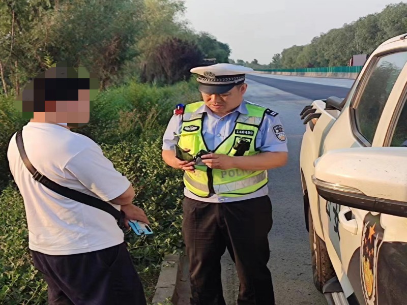 当日下午 16时许,支队一大队巡逻民警巡逻至大广高速1791公里处时,看到一名身着白色短袖的男子走在应急车道上,周围车辆不断从其身边疾驰而过,情况十分危险。巡逻民警随即将车停至安全位置拉响警笛打开警灯,以此警示后方车辆减速慢行,注意避让。随后上前将该男子拦下带至一旁询问情况。