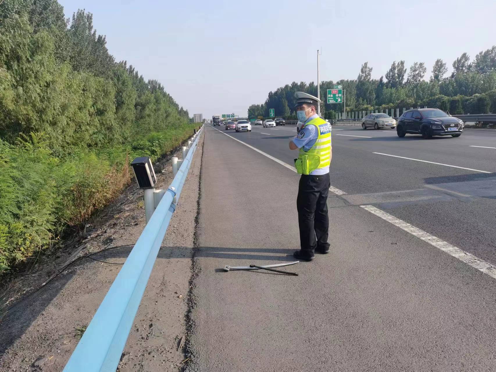 经查看,该障碍物为废旧铁管,对路面行车构成严重威胁,因当天车流量较大,巡逻交警迅速将该物品清理出高速公路,及时消除一起事故隐患。