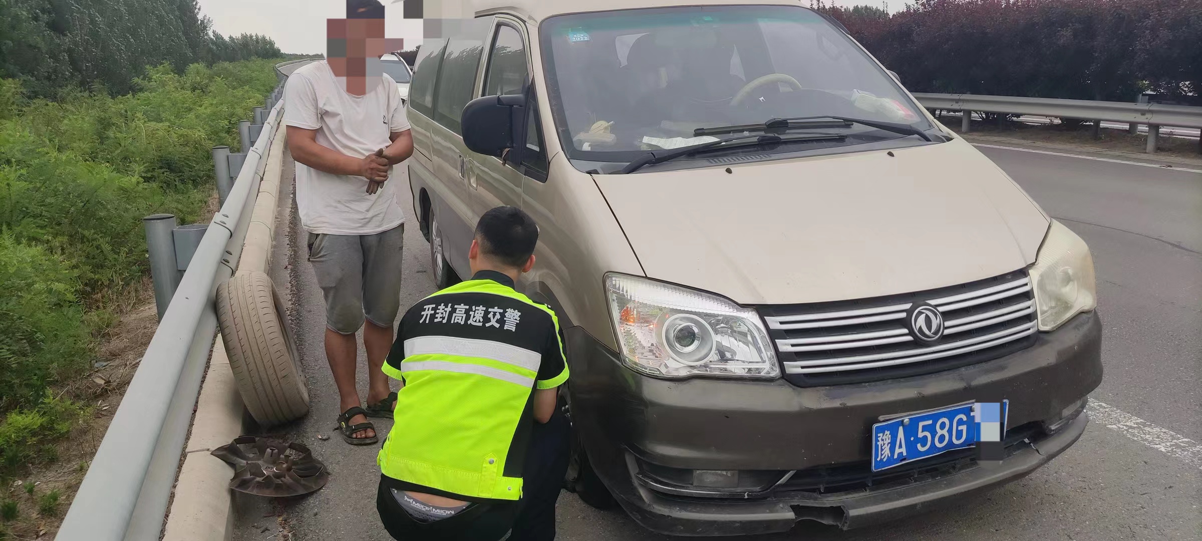 高速公路车辆行驶速度较快,如果车胎老化极易出现车辆爆胎的情况从而导致事故发生。6 月 28 日,开封高速交警支队二大队民警李超带领辅警驾驶 1172 警车在商登高速巡逻中就发现了一辆商务轿车因爆胎停在高速公路应急车道,高速交警及时提供了帮助,获得了司机的一致好评。
