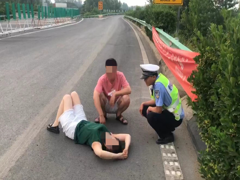7月1日,一对夫妻因牢骚发生口角,妻子一气之下跑进高速入口,“躺”至分道口路上,濮阳高速交警巡逻民警及时发现,进行调解将其安全护送下高速。
