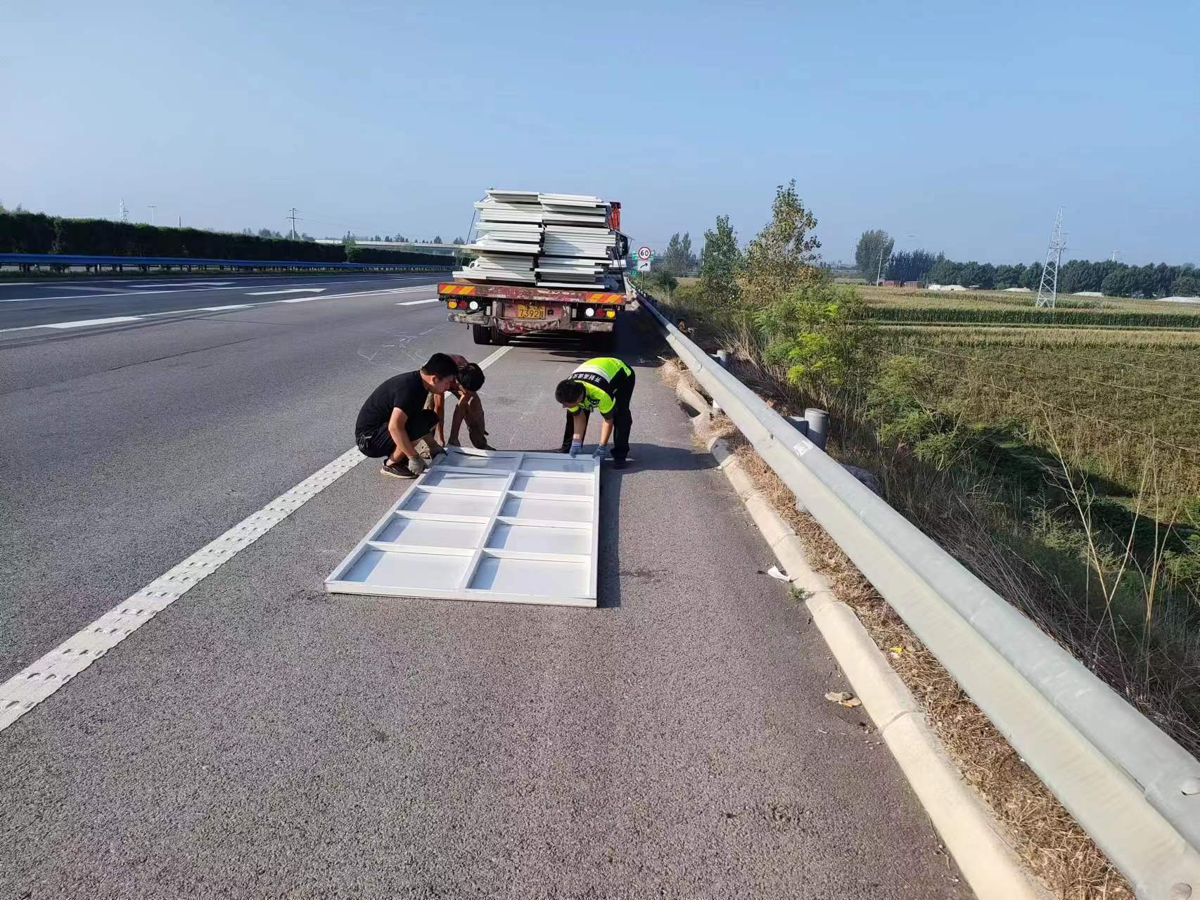 2023年9月8日上午8时,开封高速交警支队一大队巡逻民警接指挥中心报警称,有一辆拉着铁板、铁架子的半挂车在行驶至兰南高速22公里处货物掉落,为防止危险情况发生,挽回货车司机损失,民警接到报警后立即带领队员前往。到达现场后,民警先将警车停在该车辆后方,打开警灯警笛,提示后方车辆减速慢行谨慎驾驶。随后,民警带领队员一同将掉落的货物搬至货车上,并重新固定。