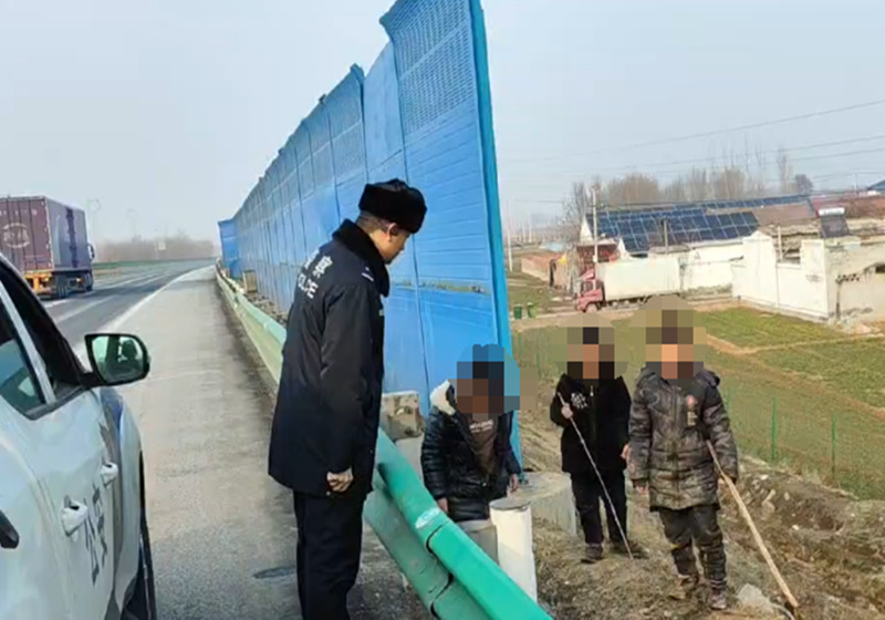 2月24日下午15时许,濮阳高速交警支队二大队执勤民警巡逻至大广高速1770公里处时,发现前方有3名男孩在应急车道上拿着棍子打着玩耍。如今正值春运期间,高速公路车流量很大,一旁不断驶来高速疾驰的汽车,十分危险。
