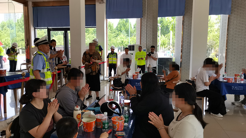 12时56分,将滞留乘客全部到达航空港服务区司乘之家后,执勤民辅警与服务区工作人员,针对乘客浮躁情绪进行了疏导,并向所有乘客免费提供泡面、火腿肠、矿泉水等食物。随后,高速故障大巴车现场,在执勤民警、路政人员、抢先救援队等人员的积极处置下,平安移送到航空港服务区修车部。从车辆故障到人员转载、车辆拖移,故障车辆的修复。历时2个小时,郑州交警高速二支队通过“警路企”协作,“一路三方”为广大司乘人员挽回了不少损失。在司乘人员登车即将出发的最后时刻,广大司乘人员鼓手点赞。