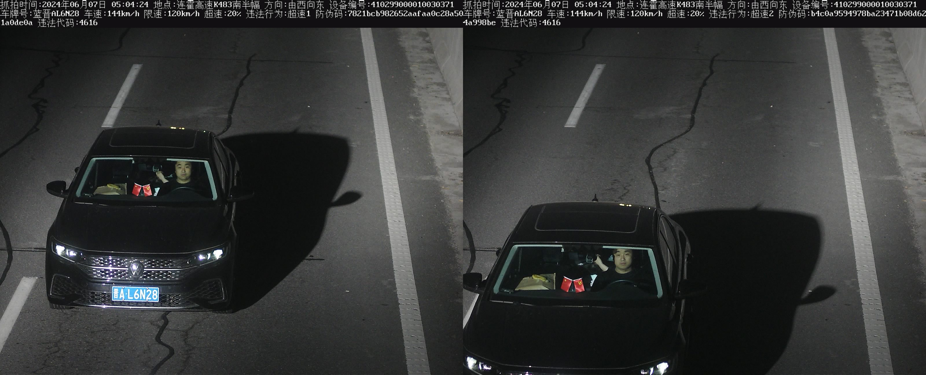 >> 【违法曝光台】2024年06月07日05时04分,晋AL6N28小型汽车在连霍高速k483公里处超速20%,罚款200元,记6分。高速交警温馨提示:依法、安全、文明行车,平安出行!【违法代码:4616