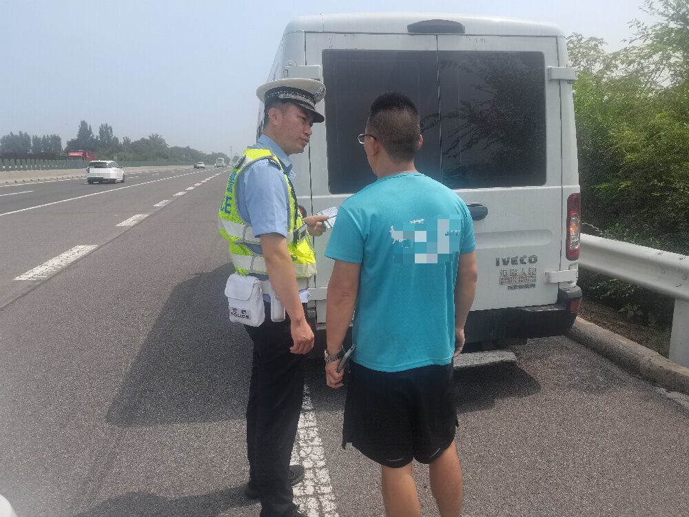 2024年07月20日15点30分郑州交警高速二支队事故大队副大队长高亮带队驾驶警车在郑栾高速正常巡逻时,发现在郑栾高速南向北14公里处有一辆小型普通客车正在缓慢靠右停在了应急车道内,随后副大队长高亮驾驶警车将车辆停在后方,并帮助驾驶员将车辆危险报警指示灯打开,在来车方向150米处放置三角警示标识,做完这两项工作后,副大队长高亮随即上前询问情况,一人在后方进行警戒,另一人协助司机对车辆故障进行检查。