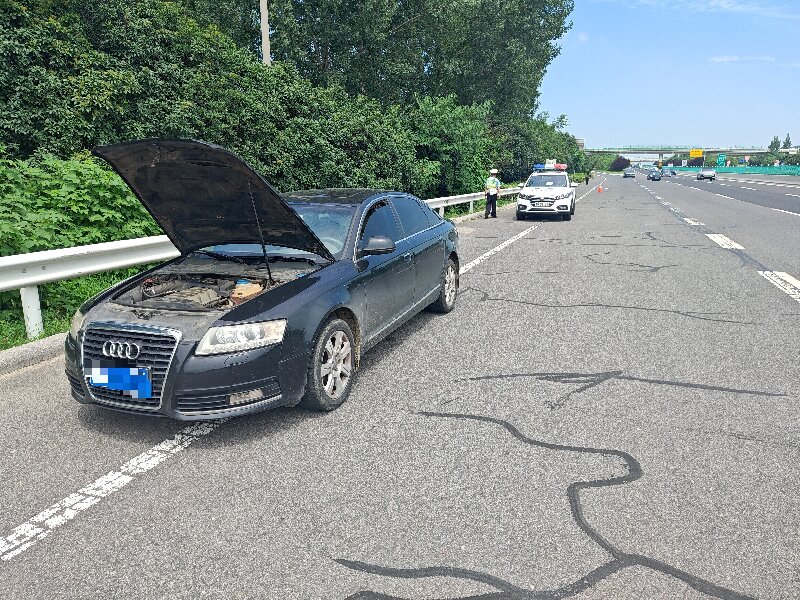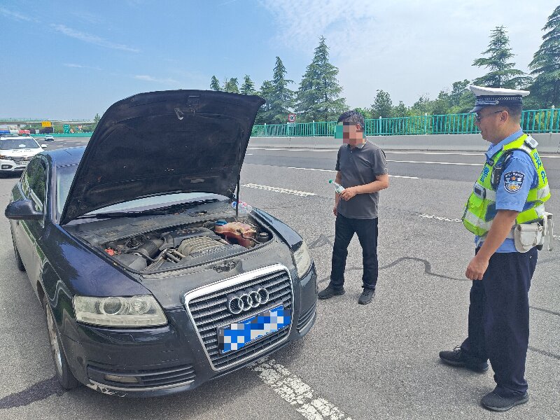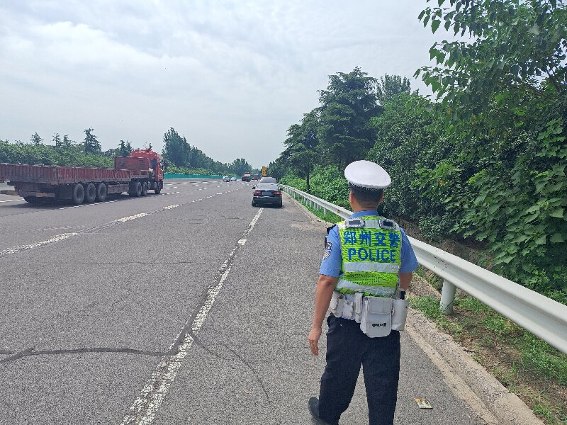 2024年8月1日,郑州交警高速二支队二大队副大队长李红军带队在郑栾高速巡逻至8公里附近时,发现一辆小型轿车开着双闪停在应急车道,在后方不远处摆放了警示标志。民警停车并上前查看。