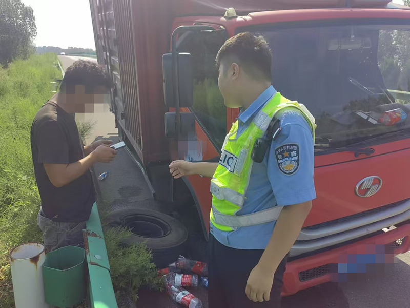 货车轮胎脱落抛锚,濮阳高速交警及时救助除隐患