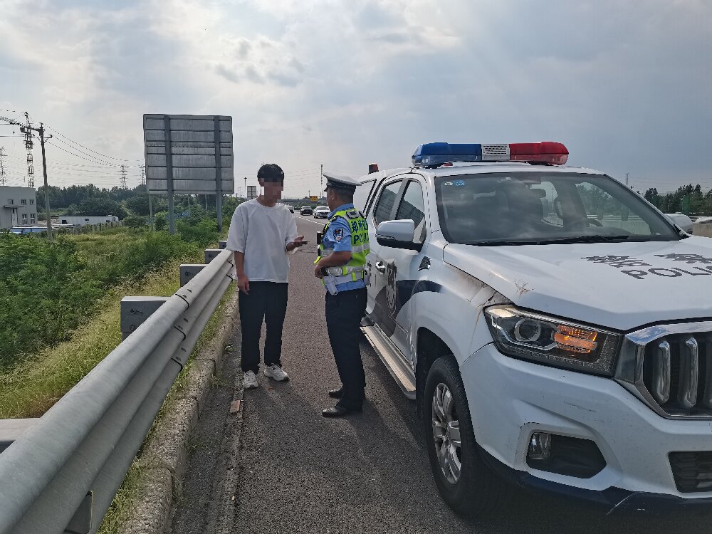 2024年9月3日,郑州交警高速二支队一大队带班民警张雪伟带队辖区巡逻至郑民高速西向东10公里处,发现一名男子站在应急车道正在哭着打电话,带班民警张雪伟立即停车,上前询问情况。
