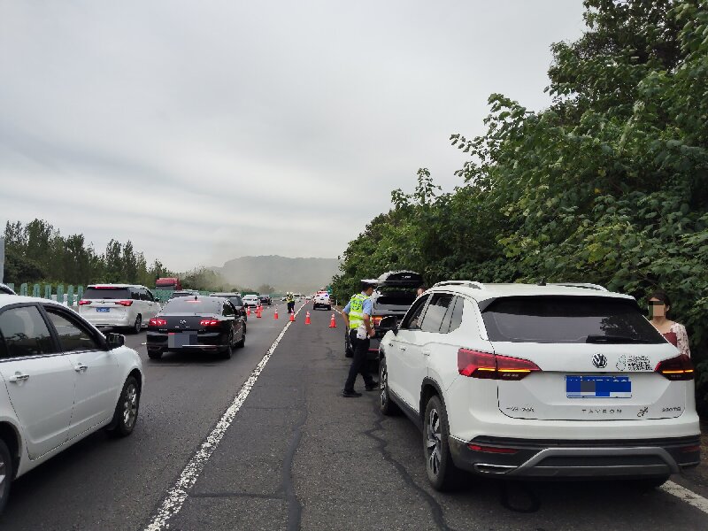2024年9月15日13时32分许,郑州交警高速二支队案侦大队副大队长信鑫驾驶警车带队巡逻至郑栾高速北向南36公里加200米处,发现两辆小型客车停在快车道上,道路上车流缓慢,将要发生拥堵,情况十分危急。