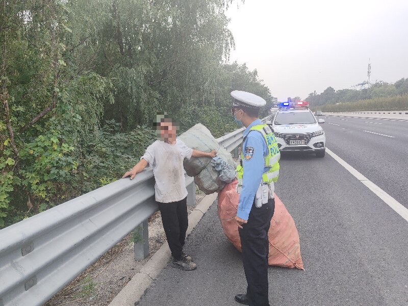 经询问得知,该男子系商丘市人来郑州务工,由于没找到工作,身上的钱花光了就在高速公路附近拾捡瓶子卖钱,不小心上了高速公路。副大队长张迎军了解情况后,安抚了当事人情绪,并告知该男子高速公路上车多且快,在高速上行走是非常危险的,河南省道路交通条例有明确规定,禁止行人上高速,希望你以后引以为戒不再犯类似错误。该男子表示表示知道错了,以后坚决不再徒步上高速。