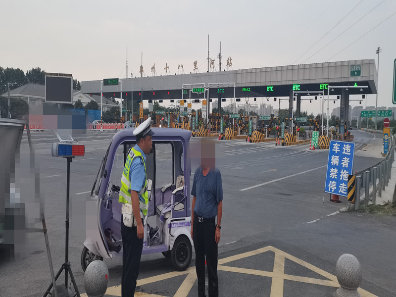 2025年7月26日15时36分许,郑州交警高速二支队案侦大队大队长张琛义带队在十八里河收费站上站广场执勤时,发现一男子驾驶着一辆电动三轮车向收费站驶来,看情形是准备上高速。民警迅速上前将其拦停,并指挥该男子靠边停车。