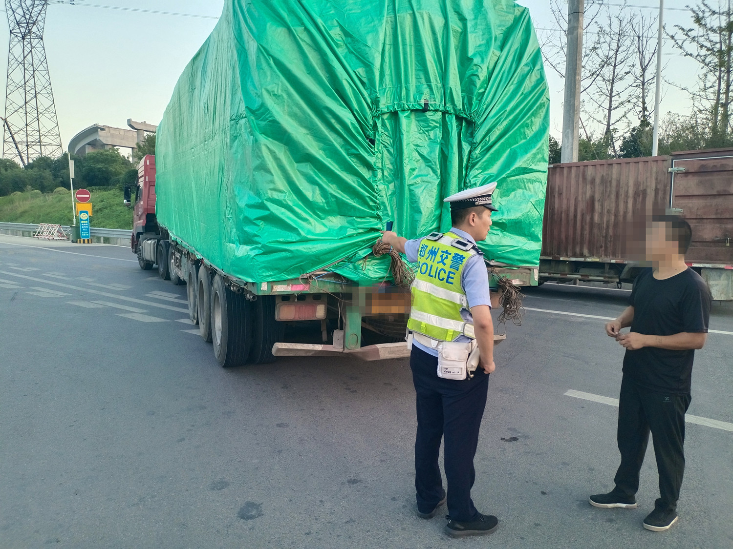 郑州交警高速二支队在此提醒广大货车司机,出车前一定要仔细检查车辆安全设施,确保反光条清晰完整、放大号醒目规范,共同营造安全有序的道路交通环境。