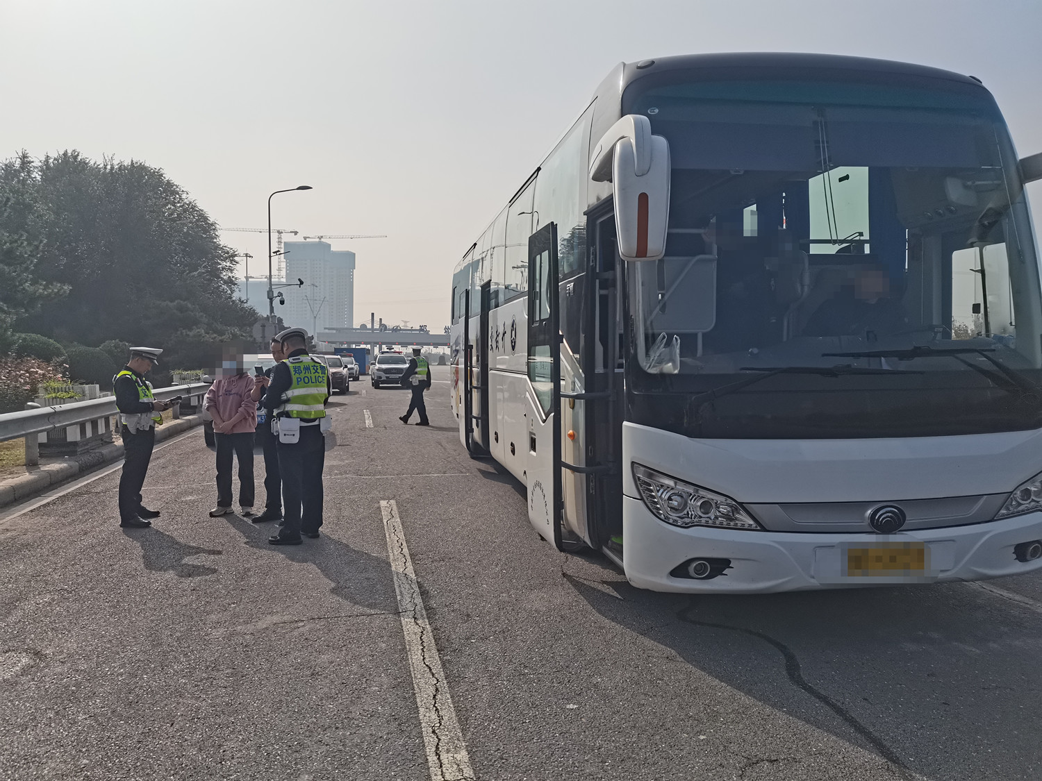 2025年10月14日上午10时许,郑州交警高速二支队二大队教导员付珂带队,在郑栾高速侯寨收费站开展安全带专项治理工作,在查处中先后发现三辆公路客运车,共有5名乘客没有系安全带。