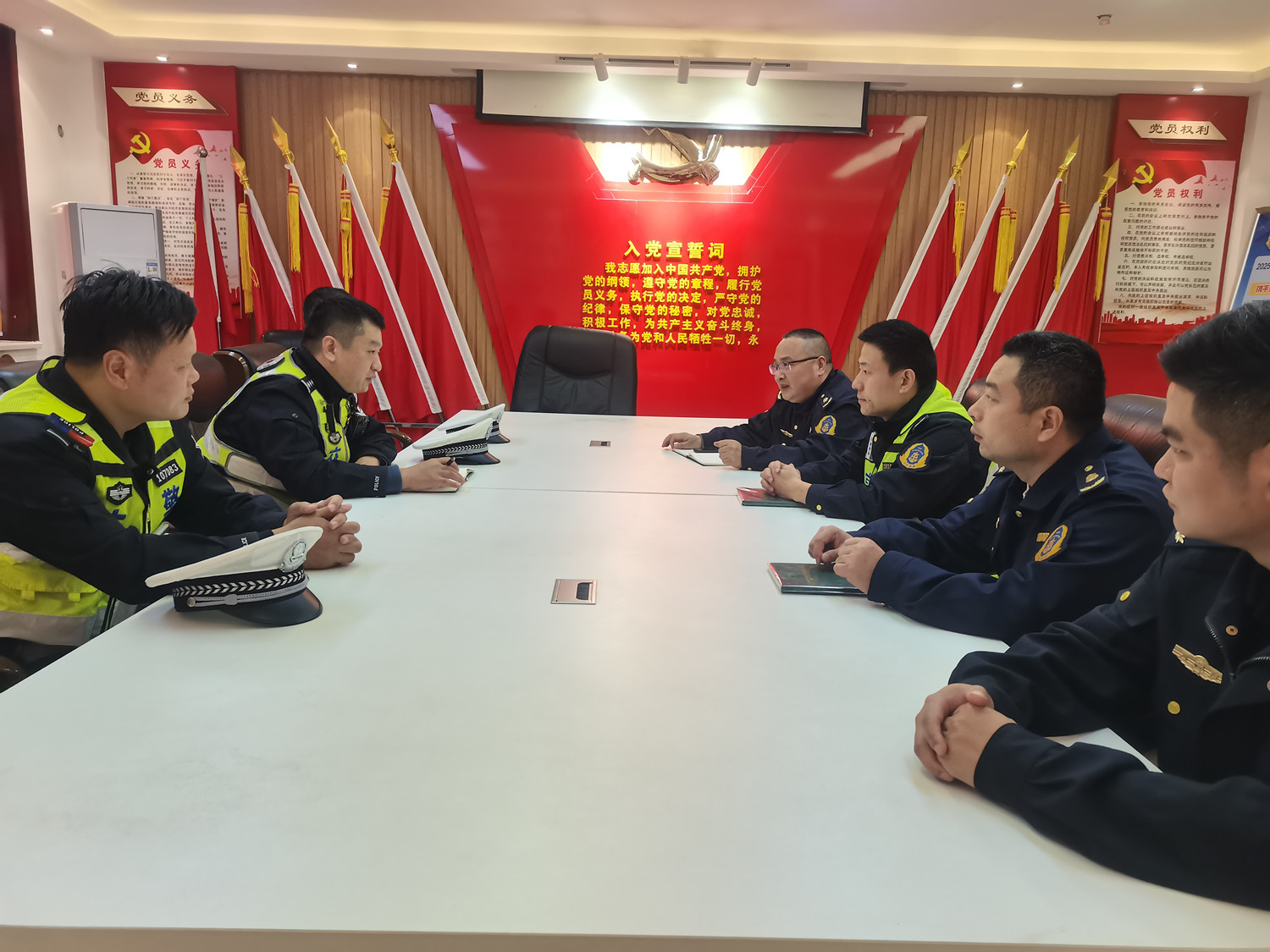 2025年11月18日上午,郑州交警高速二支队二大队教导员付珂带队,在河南高速发展有限公司广武路产管理大队主持召开了恶劣天气应急保通联席会议。会上,各部门负责人围绕如何快速响应、高效处置冰雪天气下的道路保通问题,进行了深入讨论和细致部署。会议明确了各部门职责分工,确保在紧急情况下能够迅速形成合力,共同应对挑战。