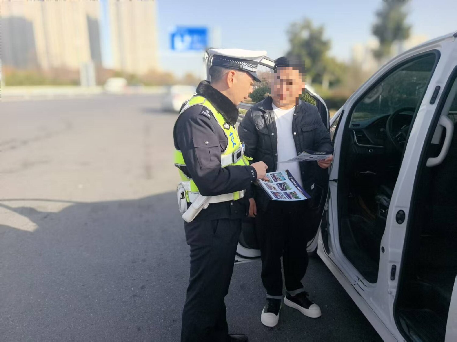 “师傅,要保持安全车距,这次轻微事故就是提醒咱们时刻绷紧安全弦!”在商登高速园博园收费站等重点站点,民警们将执法现场变成“流动课堂”。面对过往车辆,民警通过设立宣传展台、悬挂主题横幅、发放宣传手册等形式,开展“面对面”普法宣传。宣传资料紧扣高速出行需求,涵盖不占用应急车道、规范使用安全带、错过出口不倒车等核心知识点,让司乘人员在等候通行的间隙就能学到实用知识。